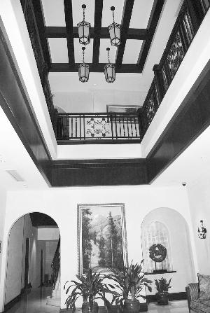 推開足有五米寬鏤空鐵藝的玻璃大門,記者走進這幢神秘的建筑,只見大廳寬敞氣派,內(nèi)部家具擺設(shè)復(fù)古而豪華,墻上則是一些老的照片和油畫作品,燈飾也是流行于民國時期的西洋式樣。大廳一角的用途為接待客人,兩旁為居住區(qū),都是一間間單獨的客房。