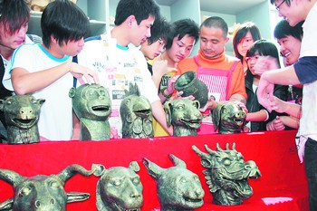 前段時間,法國佳士得拍賣行拍賣圓明園流失文物鼠首和兔首銅像,此事經(jīng)媒體報道后在全國引起巨大反響,也激起了長沙師范學(xué)校師生的憤怒!爱(dāng)時關(guān)于十二生肖銅像的話題很熱,我覺得若是仿制出十二生肖銅像,豈不是對學(xué)生進行愛國主義教育的好素材?”仿銅十二生肖獸首制作者的指導(dǎo)老師錢正財告訴記者。錢老師將這個想法跟自己的學(xué)生們一說,大家都很感興趣。于是他從所教的學(xué)生中確定12人,每人負責(zé)一個仿銅獸首的制作。