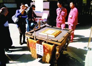 昨天中午,記者看到一只編號(hào)為0350的奧運(yùn)缶擺在該小區(qū)門前,其四周用鎖鏈與地面連接,缶上貼著“貴重物品,請(qǐng)勿觸摸”的紙條。旁邊坐著兩名自稱是中國(guó)金銀幣禮品網(wǎng)員工的女孩。據(jù)她們介紹,所賣的缶都是奧運(yùn)會(huì)開幕式上用過(guò)的,完好無(wú)損,均由單位以每個(gè)10萬(wàn)元左右的價(jià)格從官方拍得,除部分?jǐn)[在分公司展示外,剩下六七只準(zhǔn)備售賣,現(xiàn)在明碼標(biāo)價(jià)賣12.8萬(wàn)。“每只缶都有收藏證書和電子身份證書,可以上網(wǎng)核查真?zhèn)。擺在這里的是供展示,如果市民有興趣,可以留下手機(jī)號(hào)。”賣缶人員說(shuō)。