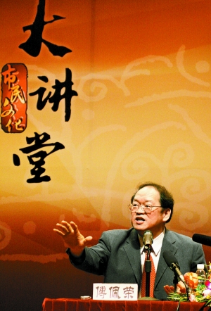 傅:父母親現(xiàn)在很年輕,孩子很小,他拼命培養(yǎng),但是他沒有想到,孩子太杰出的話,晚年就很冒險了。為什么?杰出的孩子,恐怕要為天下人服務去了。像在臺灣就有一個例子,一對老夫婦,生了八個孩子,全部到美國去,最小的那個都拿到了碩士,還有一個院士,都很有成就,但是兩老沒有人管,最后他們子女說,到美國來吧。他們去了一年就回來了,說不愿意當游牧民族,這一家住一個月,那一家住兩個月,這怎么是人的生活呢。就回到臺灣去,最后老太太過世,留一張條子給她先生,你還是跟我走吧。最后老先生也過世了。像這樣的故事,你看了就會說,這一對老夫妻,年輕的時候,好好地培養(yǎng)他們的孩子,孩子長大之后要孝順你,他也是兩面為難。因為是一個人才,他就不能只顧自己,要負責實驗室里面的東西,要替很多人策劃。