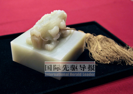國(guó)際先驅(qū)導(dǎo)報(bào)記者尚栩、金微發(fā)自巴黎、北京 4月29日下午,法國(guó)博桑-勒費(fèi)福爾拍賣行在位于巴黎九區(qū)的德魯奧拍賣中心4號(hào)廳內(nèi),舉行了一場(chǎng)名為“亞洲藝術(shù)”的專場(chǎng)拍賣會(huì)。其中,來(lái)自中國(guó)的清朝乾隆年間白玉印“九洲清晏之寶”最終以138萬(wàn)歐元落槌,加上其他一些相關(guān)費(fèi)用,這方18世紀(jì)中國(guó)皇家玉印最終拍賣價(jià)達(dá)到了168萬(wàn)歐元左右,比預(yù)估價(jià)高出幾倍。而據(jù)本報(bào)記者在拍賣現(xiàn)場(chǎng)觀察,相對(duì)于獸首拍賣時(shí)劍拔弩張的氣氛,這次拍賣顯得十分平靜。