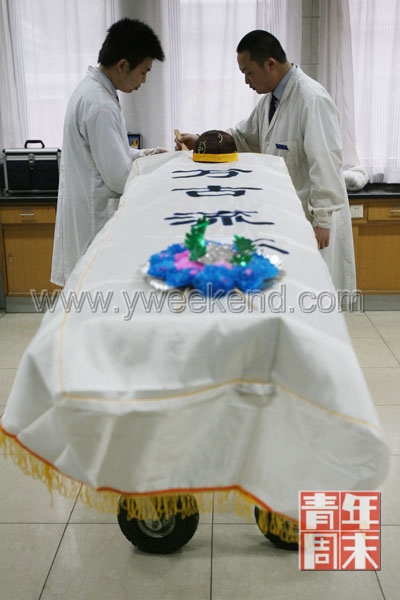 這是年輕的整容師一天中最普通的一單工作,只用時10分鐘。一天最少完成20具。對于張洋來說,早已習(xí)慣了這份工作!盎蛘哒f,我必須學(xué)會麻木!睆堁蟾嬖V記者。
