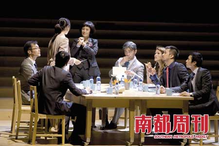 林奕華:5·12地震后,我跟張艾嘉聊天,提到我在內(nèi)地巡演時,看到許多二線城市都在“追”建筑、城市建設(shè)等,要把它弄得更像一個一線城市。大家都覺得城市好,因為可以達成許多事情。我們想要達成什么?那就是我們的欲望。當(dāng)欲望不容易實現(xiàn)時,就產(chǎn)生焦慮和不安全感。地震來了后,大家開始反省城市是否應(yīng)走得那么快。這是個很城市化的問題,而城市里上班族最多。其實,上班族在這部戲里也是一種比喻,不完全是針對上班族這群人,而是指現(xiàn)代人,探討城市人為什么會生活得不快樂。
