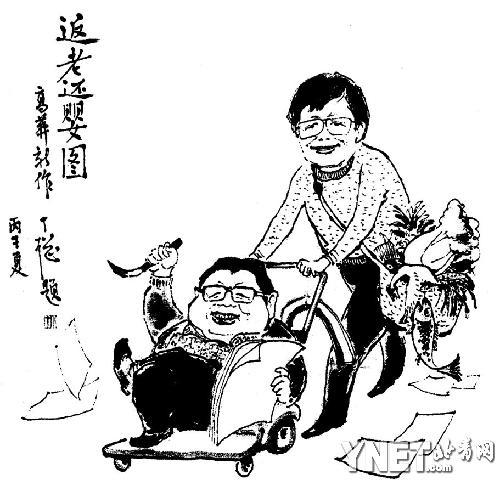 吳瓊向記者轉(zhuǎn)述的老人去世前的一些細(xì)節(jié)頗令人動(dòng)容:81歲的沈峻老人一直像照顧孩子一樣照顧病中的丁聰。直到老人停止了呼吸,她覺(jué)得還有些事沒(méi)有交待清楚,于是又在丁聰衣兜里一邊放上了餐巾紙,一邊放上牙簽這兩樣丁聰出門(mén)必備的小物件。沈峻還給丁聰?shù)囊路锎狭烁呙L的《返老還童圖》并附上親筆信,大意是“小丁老頭,我推了你一輩子,把你推到了最后,剩下的路該你自己走了,不過(guò)我們很快就會(huì)又見(jiàn)面的!彼詈笥纸o丁聰衣襟里放上了老人生前最?lèi)?ài)的幾樣零食:巧克力、花生米和咖啡,之后就決定不再來(lái)看丁聰了。