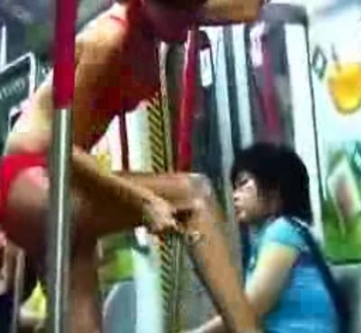 昨天(6月2日),記者在網(wǎng)上搜索,發(fā)現(xiàn)廣州地鐵上也曾有多宗雷人行為藝術(shù)表演。在一張名為“廣州地鐵上的雷人一幕”照片上,兩名打扮女性化的男子,各自抱著一個枕頭坐在地鐵上談笑風生。此外,還有一段“廣州地鐵上的行為藝術(shù)”視頻更是讓人不可思議,一名打扮成空姐模樣的女子上到地鐵后,立即放下行李箱,脫去外套和襯衣,把地鐵扶桿當作晾衣架,全身上下只剩下內(nèi)衣,她不緊不慢拿出鏡子抹完口紅后,把腳踏在車廂內(nèi)的坐椅上,然后刮起了腿毛,之后,又把衣服穿上,不少乘客見狀紛紛躲避。