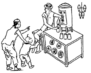 汽水。“這可是一個(gè)新鮮的玩意兒,喝到肚子里打嗝,熱氣從口腔和鼻孔噴出來,身體就會(huì)涼快下來,所以,汽水很受歡迎。”