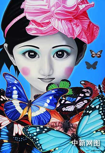 中新網(wǎng)上海六月五日電 (記者 孫璐)由上海藝術(shù)博覽會(huì)組委會(huì)、上海巴塞藝術(shù)中心等單位聯(lián)合主辦的“蝴蝶飄飄——江衡藝術(shù)作品展”,今天下午在上海美術(shù)館揭開帷幕。另類的美女造型,強(qiáng)烈的視覺沖擊,爭(zhēng)議的藝術(shù)評(píng)論,記者在今天開幕的這場(chǎng)畫展上看到的是中國(guó)青年藝術(shù)家對(duì)于現(xiàn)代藝術(shù)的深層次探索。