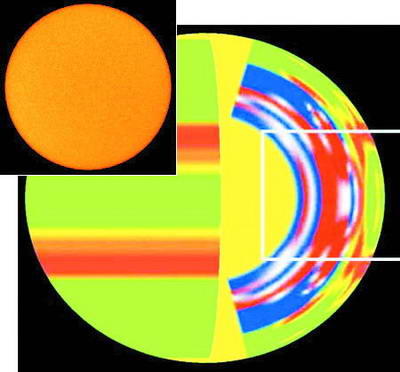 NSO科學家Frank Hill表示,這便是在太陽上發(fā)生的一切,只不過略有不同罷了。利用一種被稱為日震學的技術,他和同事Rachel Howe從上世紀90年代中期開始對太陽射流進行跟蹤研究。這種方法與地震學家用于探測和評估地震的方法類似,并且由于太陽射流發(fā)生在太陽表面下幾千公里,因此日震學的應用便顯得尤為重要。Hill和Howe發(fā)現(xiàn),與正常情況所需的11年相比,形成于1996年的太陽射流運動得更為緩慢——用了13年才到達了臨界的南北緯22度。