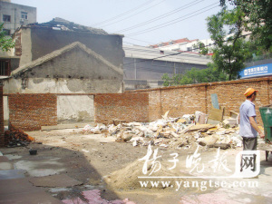 在院落里,用新磚圍出一塊空地,里面堆放著各種建筑垃圾。一位社區(qū)工作者正指揮著垃圾車進(jìn)進(jìn)出出。社工告訴記者,選擇在這里倒垃圾也是無奈之舉!耙驗橹車簧偈菍W(xué)區(qū)房,加上地段好,買房裝修的市民特別多!鄙绻ふf,這些建筑垃圾被隨意丟棄,周圍市民反映非常大。“我們請來了保潔隊定期清理?墒,新街口寸土寸金,根本沒有地方堆放!
