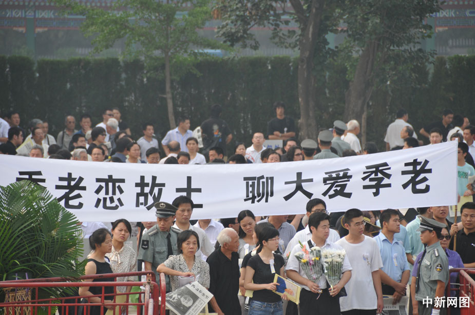中新網(wǎng)7月19日電(張中江) 19日上午,北京大學(xué)資深教授季羨林先生的遺體告別儀式在八寶山舉行,數(shù)千民眾赴現(xiàn)場送別季老。