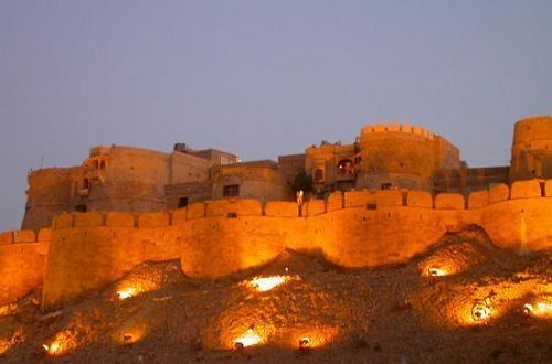 齋沙默爾是印度最西部的大城市,再往西100多公里就是巴基斯坦,地處沙漠地區(qū),整個(gè)城市的建筑多以黃色的砂巖修建,于是有“金色之城”的稱號(hào)。中世紀(jì)是絲綢之路上重要的都市,1156年由齋沙默爾王開(kāi)始在山丘上修建城郭,經(jīng)過(guò)800年的累積與善用沙漠地利之便,建成易守難攻的齋沙默爾堡,以黃色砂巖建造的城堡聳立在城內(nèi)山上。