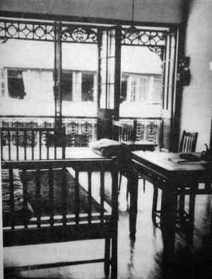 1920年5月5日,毛澤東以“驅(qū)張”代表團(tuán)成員的身份,從北京來(lái)到上海,住在靜安區(qū)原哈同花園附近的哈同路民厚里29號(hào)(今安義路63號(hào))。這是一幢磚木結(jié)構(gòu),坐南朝北,沿街而建的舊式二層樓里弄房子。樓下是會(huì)客室兼飯廳。樓上的臥室有一排臨街的長(zhǎng)窗。室內(nèi)放著兩張床,一只茶幾和一張桌子。桌上擺著粗瓷茶壺,茶杯及筆硯文具。毛澤東就住在這里。同住的還有李思安、李鳳池、陳書(shū)農(nóng)等三個(gè)湖南學(xué)生。他們每人每月僅有3元零用錢。過(guò)著十分簡(jiǎn)樸的生活。四個(gè)人輪流做飯,常吃蠶豆煮飯,生活比較清苦。毛澤東在這里每天都要閱讀各地的報(bào)刊和書(shū)籍。他還邀請(qǐng)十多位旅滬青年,成立了“自修學(xué)社”,共同學(xué)習(xí)各種理論著作和外語(yǔ)。1920年6月7日,毛澤東寫(xiě)信給北京的黎錦熙老師,信中談及南下見(jiàn)聞和自己追求革命的決心,說(shuō)他準(zhǔn)備瀏覽在滬“新出的報(bào)、雜志、叢書(shū)及各種譯本,尋獲東方及世界學(xué)術(shù)思想之大綱要目”。