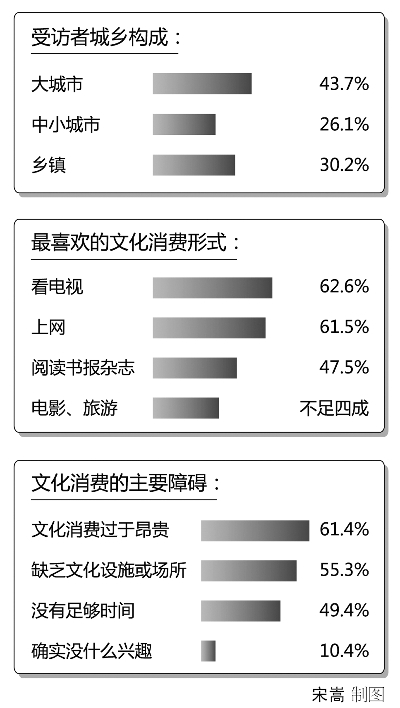 編輯點評:看電視、上網(wǎng),是居民文化休閑活動的“主力軍”,折射出我國民眾的文化消費形式還較為單調(diào)。
