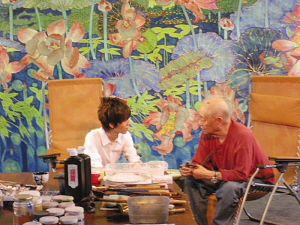 黃永玉在北京的居所——萬(wàn)荷堂充滿了田園風(fēng)光和藝術(shù)氣氛,成了本次“求學(xué)”對(duì)話的最佳地點(diǎn)。來(lái)到京郊,漸漸行至萬(wàn)荷堂,原本因胃痛而精神不佳的郭敬明忽然緊張起來(lái),見慣了大場(chǎng)面的他反復(fù)表示“很緊張”。沒(méi)有上課鈴,《大師課堂》悄然開始,“老師”也走了出來(lái)。首次見到黃永玉老先生,郭敬明不停地翻看手中的文稿,為接下來(lái)的會(huì)面做著準(zhǔn)備。不過(guò),我們從他的眼神中,也看出了他內(nèi)心的期待。