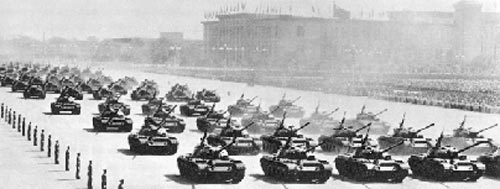 1956年的國(guó)慶閱兵式對(duì)全體受閱官兵來(lái)說(shuō),遇到了前所未有的考驗(yàn)——閱兵式在大雨中舉行!冒雨游行的群眾慶祝游行隊(duì)伍可以打傘,但解放軍不能打傘。閱兵式展示的就是身經(jīng)百戰(zhàn)的人民軍隊(duì)的頑強(qiáng)作風(fēng)、高昂士氣和不屈不撓的堅(jiān)定意志。