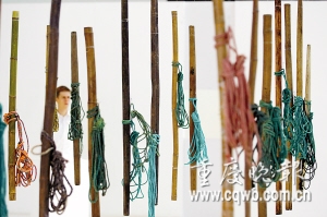 把自己當(dāng)成雕塑一動(dòng)不動(dòng)、把自己掛在鐵桿上被灑水車噴水……昨日,重慶首屆中德青年裝置藝術(shù)作品展——“現(xiàn)實(shí)中的影像”在黃桷坪當(dāng)代美術(shù)館正式開展。20多位中德青年藝術(shù)家?guī)砹?0件稀奇古怪的作品,其中,用每根100元收購(gòu)來的棒棒讓參觀者留下了深刻的印象。
