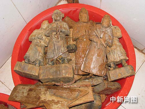 兩墓共出土文物一百二十余件,分金器、銀器、銅器、鐵器、鉛錫器、木器、玉器、墓志等,尤其是這兩座墓中均出土了木俑(武士俑、文臣俑、娛樂(lè)俑、侍俑),他們形態(tài)各異,雕刻精湛,形象逼真,在武漢乃至湖北省的明代墓葬中為首次發(fā)現(xiàn)。