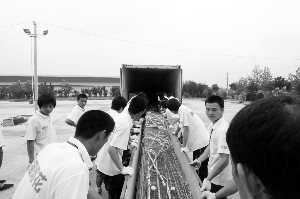 據(jù)趙偉平介紹,3幅網(wǎng)幕焰火巨作,共用了27輛“小火車”,“小火車”又分別坐上了5輛重型貨柜車,終于運(yùn)抵了天安門廣場(chǎng)。(郝濤)