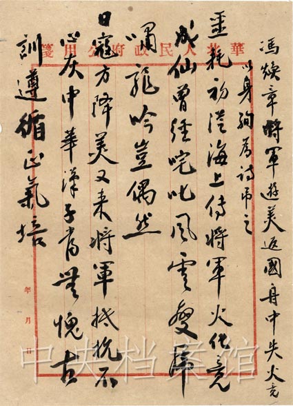 馮玉祥( 1882~ 1948)字煥章,安徽巢縣(今巢湖市)人,愛國將領(lǐng)。 1946年 9月赴美國考察, 1948年7月響應(yīng)中國共產(chǎn)黨號召,動(dòng)身回國參加新政協(xié)籌備工作, 9月 1日因回國客輪在敖德薩港附近的黑海海面失火遇難。他的遇難震驚了中外,中共中央主席毛澤東和中國人民解放軍總司令朱德向馮玉祥夫人發(fā)出唁電: “驚悉馮先生及令媛不幸遇難,至深痛悼,馮先生置身民主,功在國家。尚希勉抑哀思,并為實(shí)現(xiàn)馮先生遺志而奮斗!