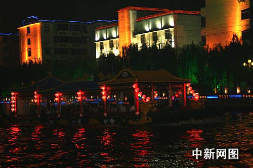 晚上9時(shí)許,記者在運(yùn)河邊看到,古運(yùn)河的游船忙得不可開(kāi)交,許多游客排著隊(duì)等著感受“船在水中走,人在畫(huà)中游”的勝景。