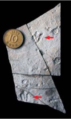 “朝鮮日?qǐng)?bào)”消息,韓國文化遺產(chǎn)廳國立文化遺產(chǎn)研究所天然紀(jì)念物中心在南?げ泼婕s1.12億至1.25億年前地層中找到一恐龍腳印化石。這是僅在中國和韓國生存的小型獸腳類(用兩腳走路的肉食恐龍)恐龍的腳印化石,學(xué)名叫“Minisaur ipus ichnosp”(意為“小型恐龍腳印”)。