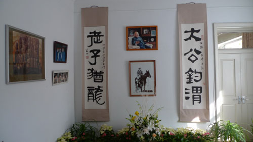 呂老遺像兩側(cè),是散文家黃苗子先生寫一副對(duì)聯(lián):“太公釣渭 老子猶龍”。呂彤林說(shuō):“父親 喜歡黃苗子的樸拙的書法,對(duì)姜太公和老子那種去留無(wú)意的境界很向往,對(duì)名利不以為意!