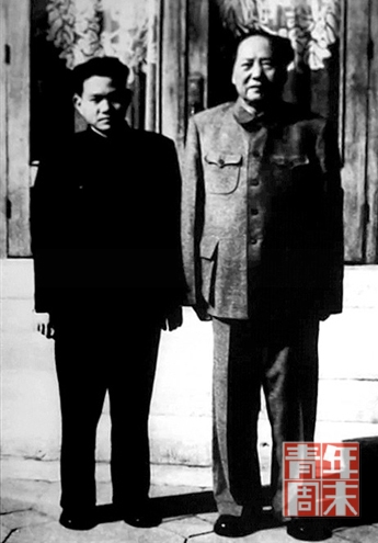 ◎毛澤東與衛(wèi)士長(zhǎng)李銀橋的合影