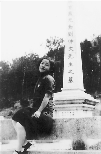 劉重喜介紹,照片上是她的表姑陶春暉,背面有一行小字“中華民國二十五年三月二十九日旅行于卓刀泉,留影于劉表叔墓前”。當(dāng)時陶春暉16歲,她的父親陶德瑤是劉公的表哥,他們同時赴日留學(xué),一起加入同盟會。