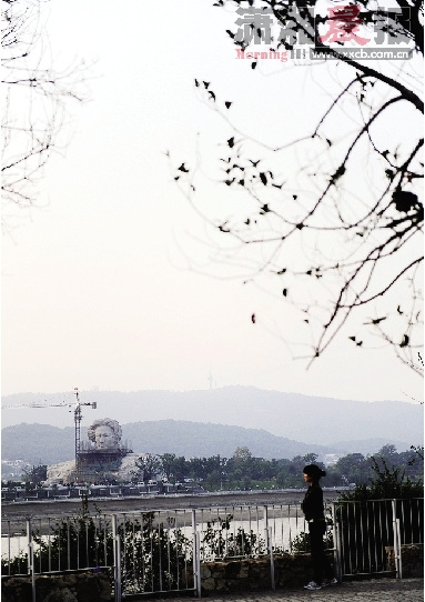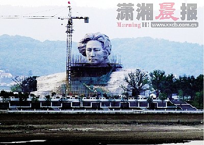 “哎,你們看,多英俊呀,多帥氣呀,青年時(shí)代的毛主席!”家住湖南第一師范附近的黃巖明先生,昨日打開窗戶便看見矗立在橘子洲頭的青年毛澤東藝術(shù)雕塑,他趕忙攜左鄰右舍到湘江風(fēng)光帶來個先睹為快。而令他意想不到的是,盡管高高的塔吊還陪伴著藝術(shù)雕塑一動也不動,盡管藝術(shù)雕塑面部以下的腳手架還沒全部拆除,但橘子洲頭和湘江兩岸已經(jīng)聚集著上萬名長沙市民駐足觀看了。