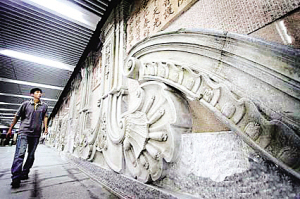 近期關(guān)于藝術(shù)品進(jìn)地鐵的話(huà)題是隨著北京地鐵4號(hào)線的開(kāi)通而逐漸熱起來(lái)的。于9月底通車(chē)的北京地鐵4號(hào)線在8個(gè)重點(diǎn)站設(shè)置了裝飾性藝術(shù)壁畫(huà),其“記憶歷史文脈,彰顯城市文化,突出地域標(biāo)志”的設(shè)計(jì)理念使這些壁畫(huà)充滿(mǎn)了人文氣息和歷史厚重感。如國(guó)家圖書(shū)館站的主題為“書(shū)的海洋”,圓明園站的西洋樓殘柱浮雕,西單站的《老字號(hào)》浮雕等?梢钥闯龅罔F經(jīng)營(yíng)方對(duì)引入公共藝術(shù)的重視,以及通過(guò)藝術(shù)品來(lái)裝飾地鐵空間,使乘客得到美的熏陶,甚至提高民眾的藝術(shù)欣賞水平的愿望。