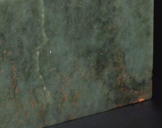 李教授現(xiàn)為江蘇省書畫鑒定小組主任委員,他潛心研究篆刻三十多年,他向記者介紹:清代乾隆二十五年后時玉器制作進入玉器史上的鼎盛期,而在玉器質(zhì)地的選料上,都是由新疆大吏搜羅開采頂級的上品而充貢內(nèi)廷。而且皇帝玉璽成品都很規(guī)整,幾乎做到玉璽無筋、無柳、無瑕,用于制作玉璽都為最好的肉質(zhì),開料與玉璽制成的比率很低,原料的浪費極大,為的就是選料的純靜,美玉良工以確保玉璽的精美度,而此次拍賣的乾隆“八徵耄念之寶”青玉璽,目鑒便知玉質(zhì)上有大片的柳絮紋。(圖一)玉質(zhì)當(dāng)屬普通青玉料,皇家玉璽是不會選這種檔次的玉料制作的。