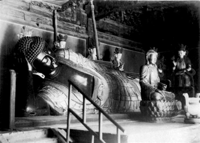 西山臥佛寺的老照片更讓文史工作者吃驚不已,照片中巨大的5萬斤臥佛腹前,竟然還有一尊端坐蓮花座、有臥佛四分之一大小的坐佛。而在古籍中,并沒有臥佛前還有一尊坐佛的記載。因此,西山臥佛寺有了兩個(gè)謎團(tuán):即元代沒有大型運(yùn)輸設(shè)備,重達(dá)25000公斤的臥佛是怎樣運(yùn)上山的?臥佛前何時(shí)有了小坐佛?目前,這些問題正在進(jìn)一步考證。