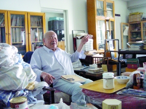 因怕打擾老人的生活規(guī)律,盡管時(shí)常掛念著老人,可我從來(lái)不輕易地打電話給老人。有時(shí),打個(gè)電話也只是簡(jiǎn)短地問候。最長(zhǎng)的一次是王老打過(guò)來(lái)的。那天是2007年12月23日(星期天)的上午,王老的身體已經(jīng)恢復(fù)得很好,說(shuō)話聲音宏亮,底氣很足。他先是問我《陳夢(mèng)家和他的朋友們》的進(jìn)展情況,我告訴他,涉及的人和事很多,一時(shí)半會(huì)兒的恐怕完不成。他說(shuō),不用急,慢慢寫。我告訴他,好在《碎錦零箋》一書馬上要出版了,書里有一章《陳夢(mèng)家往事》專門寫了您和夢(mèng)家先生的交往故事,您題寫的《陳夢(mèng)家和他的朋友們》也收錄進(jìn)去了。老人很高興。我還告訴老人,最近我在西單圖書大廈,買到了您的《自珍集》,在三聯(lián)書店買到了《奇人王世襄》一書。他聽了笑得很開心。他說(shuō),本來(lái)書名不叫這個(gè),是三聯(lián)書店說(shuō)叫《奇人王世襄》有賣點(diǎn),我也就同意了。