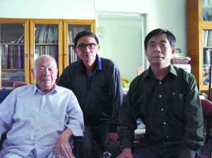 時(shí)間過(guò)得真快,不知不覺地一個(gè)小時(shí)過(guò)去了,我們不忍心讓已經(jīng)93歲高齡的老人太累,就提出告辭。王老似乎意猶未盡,繼續(xù)和我談?wù)撍完悏?mèng)家先生一起探討明清家具的往事。當(dāng)我告訴他擬編著《陳夢(mèng)家和他的朋友們》一書,并提出請(qǐng)他題寫書名時(shí),王老痛快地答應(yīng)了,并讓我留下地址和電話,說(shuō)寫好了就通知我來(lái)取。真的該走了,我居然忘記了王老家門上貼的提示:不要請(qǐng)王老合影;不要請(qǐng)王老題字的“約法三章”,提出與王老合影,老人愉快地答應(yīng)了。