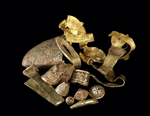 今年7月,考古人員特里·赫伯特在英國中部的一個農(nóng)場中發(fā)現(xiàn)了迄今最大的、盎格魯撒克遜時期的寶藏,包含1500余件金、銀制品,其歷史可追溯至17世紀(jì)。