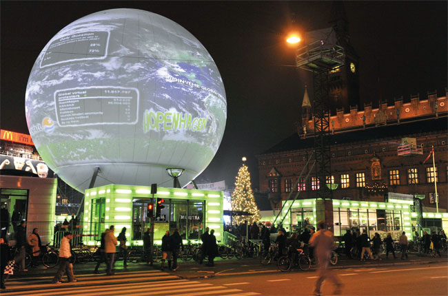 12 月7 日,記者抵達哥本哈根。據(jù)說,有大約1200 輛豪華汽車、140 架私人飛機以及數(shù)萬人涌入哥本哈根,為此,丹麥政府不得不為會議購買價值60 萬歐元的“碳積分”。中國和美國成為會場里最受關(guān)注的焦點。而在會場外,到處可見環(huán)保人士的環(huán)保秀,來自小島國代表的示威抗議也此起彼伏。此時,受人矚目的哥本哈根變成了一個環(huán)保“大秀場”。