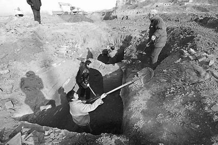 昨日,南水北調(diào)主干渠焦作Ⅱ段九里山附近發(fā)現(xiàn)一漢墓群,焦作市文物勘探隊工作人員正在對墓群進行搶救性發(fā)掘,目前已出土有價值文物二十余件。