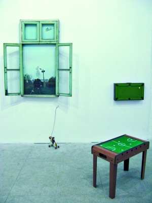 記者了解到,此次展覽以裝置和影像、綜合材料作品為主。夏彥國指出,青年藝術(shù)家是當(dāng)代藝術(shù)以后的主要力量,而裝置、影像也是未來當(dāng)代藝術(shù)發(fā)展的主要方向。比如黑橋藝術(shù)區(qū)的趙一淺在裝置作品《主觀 現(xiàn)場(chǎng)》中將童年記憶中的臺(tái)球桌子、足球場(chǎng)地、小玩具及火車搬入美術(shù)館。而生活在798周邊的陳曦、張雪瑞夫婦將展出的影像作品則是循環(huán)往復(fù)地書寫著畢加索的名言:愛情這種事情是不存在的,存在的只是愛情的證據(jù)。