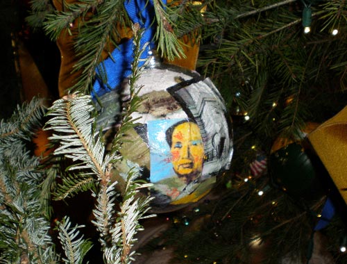 據(jù)12月25日出版的《環(huán)球時(shí)報(bào)》報(bào)道,在奧巴馬入主白宮的首個(gè)圣誕節(jié),擺放在白宮藍(lán)廳中央的一棵圣誕樹(shù),引起外界的強(qiáng)烈興趣。這棵圣誕樹(shù)由奧巴馬夫人米歇爾親自“裝扮”,上面懸掛了中國(guó)領(lǐng)袖毛澤東頭像的裝飾。