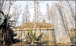 1月4日中午,記者趕到后七步村中的曹植墓,一個(gè)大約1000平方米的院子中栽滿了楊樹,曹植墓圓圓的墳冢位于院子的東北角,南邊不遠(yuǎn)處還有一座明代修建的亭子,亭子頂部已經(jīng)破壞得很嚴(yán)重,亭子中立有一明代石碑。