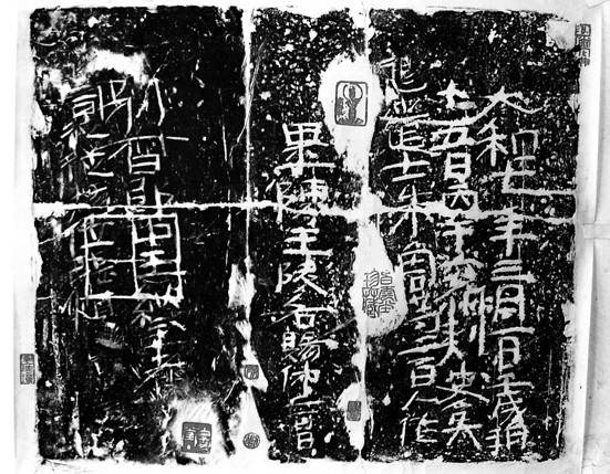 今天,曹植墓前獨留一方珍貴的隋代石碑,供游人憑吊。碑文記載,隋開皇十三年,曹植墓曾塌壞,“兆瑩崩蒼,茂響英聲,遠而不絕。”這塊碑,三面刻字,無撰文、書丹者姓名,字體篆、隸、金、楷相雜,自成一格。清康有為在其《廣藝舟雙楫》一書中,高度評價了碑刻書法:“快刀斬陣,雄快遒勁者,莫若《曹子建碑》矣!