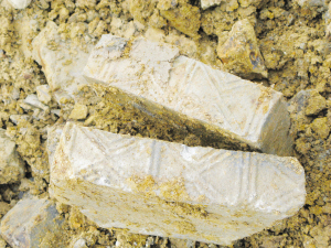 走下山坡看見(jiàn)山腰中間留下了大量挖土機(jī)機(jī)爪的痕跡,抓痕里不時(shí)夾雜著一些墓磚。繞過(guò)中間的池塘,我們來(lái)到對(duì)岸的山坡。同樣,這里也是一處墓群,地面上墓磚被丟棄一地,考古專家告訴記者,從土層暴露出來(lái)的墓磚看,也是三座大墓,“中間一座肯定是近日被挖開(kāi)的,這些堆土是新填的,盜墓賊已經(jīng)將古墓洗劫一空,然后做了偽裝,把挖開(kāi)的古墓又填埋了”。據(jù)他介紹,這三座古墓全都是東西向葬式,墓形都很大,從墓形規(guī)模可以斷定,這是一處六朝早期的貴族墓群。