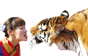 中國(guó)第一馴虎女郎:叼肉喂虎秀“人虎情”(圖)