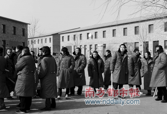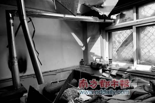 2月23日,正陽藝術(shù)區(qū)值班的藝術(shù)家們,只得圍坐在炭火邊取暖。自2009年11月起,藝術(shù)家們原先租住的房屋已經(jīng)被斷水?dāng)嚯,而前一天,原先可生爐子居住的維權(quán)辦公室,已被不明身份的人士用大型機(jī)械掀去屋頂,房門及窗戶等均被砸爛。