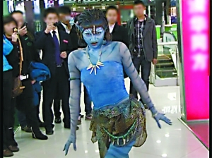 擁擠的中關(guān)村電子賣(mài)場(chǎng),一位舞者化身成電影《阿凡達(dá)》里的納美人,伴隨著《大河之舞》的音樂(lè)正大跳踢踏舞,藍(lán)色的腳尖踩踏的不是地板,而是9臺(tái)筆記本……這段被市民拍下的視頻在網(wǎng)絡(luò)上瘋傳,網(wǎng)友評(píng)價(jià)其為“史上最具幻想力的商家宣傳”。