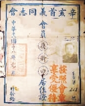 據(jù)文獻資料記載,辛亥首義同志會是辛亥革命紀(jì)念組織中最有影響的組織?箲(zhàn)勝利后,湖北籍的首義人員“覽締造河山之艱難”,擔(dān)憂“辛亥史跡,若不及早探詢,據(jù)事實錄,轉(zhuǎn)瞬人事代謝,酋軒何從采輯?”遂在1946年10月10日成立以居正為理事長的辛亥首義同志會。首義同志會創(chuàng)辦了首義學(xué)校,招收首義人員遺屬就學(xué)。成立辦事處,印制辛亥首義同志會會員名冊,表列姓名、籍貫、住址等名目,并收集首義歷史資料。擁有“兩證”的會員除了可證明參加過辛亥首義革命外,還可享受政府的系列優(yōu)撫政策。當(dāng)時登記會員有1644名。目前,根據(jù)掌握的名冊,參加革命的“首義老人”已全部辭世。