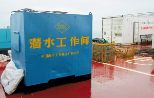 記者看到,“南天順”甲板上整齊放置了很多設備,兩個巨大白色“箱子”尤其引人注目。隨船醫(yī)生黃耀平告訴記者,這是負責供氣、減壓的應急設施。根據(jù)水下考古程序,考古隊員作業(yè)出水后都需先進入減壓艙內(nèi)進行加壓、減壓。此次為了打撈“南澳一號”,“南天順”配備了先進的設備和儀器,如甲板減壓艙設備一流,有可視屏幕,醫(yī)務人員可看到密閉艙內(nèi)隊員的情況,也可通過電話與考古隊員對話交流。