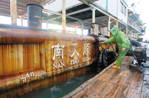記者尾隨近距離看到,因為海上波濤洶涌,小艇在靠近“南天順”時極其小心,隨后隊員們相互幫助,一一登上“南天順”。約一個小時后,同行的邊防派出所民警離開“南天順”返回碼頭。記者上前了解到,水下考古隊員當晚便開始船上生活。在接下來的三個月,他們將一直待在船上,按照計劃進行打撈工作,生活必需品則由民警負責運送。