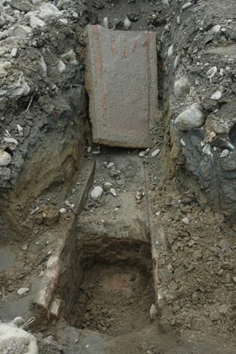 近日,四川省江油發(fā)電廠在維修老廠區(qū)染料車間道路時(shí)發(fā)現(xiàn)古墓,廠方立即停工保護(hù)現(xiàn)場并報(bào)告市文管所前來調(diào)查。該墓葬為唐代石槨墓葬。墓長2.45米,寬1.2米高0.9米,墓葬距地表1.1米。清理出土有開元通寶錢幣、鐵器殘件、瓷片、陶片殘件等文物標(biāo)本。