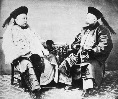 清代有品位的官員之例有花翎者,內(nèi)廷王、御前大臣、領(lǐng)侍衛(wèi)內(nèi)大臣、直省將軍、內(nèi)大臣等以及領(lǐng)侍衛(wèi)府官、滿員(滿族官員)五品以上皆冠戴孔雀花翎,六品以下者只能戴褐羽藍翎,也就是俗稱的“野雞翎子”了。清代的親王、郡王中賞戴花翎的,僅見于乾隆朝。當時順承勤郡王名叫泰斐英阿,因為當了前鋒統(tǒng)領(lǐng),便向皇祖乾隆乞賜花翎。乾隆說,花翎是貝子之制,諸王戴了就會失制。軍機大臣傅恒就代為說情:郡王年幼,想戴花翎玩兒,以為美觀。乾隆這才答應了,同時賜給另一位皇孫三眼花翎,說:都是孫輩,以為美觀可也?芍敃r諸王想皇上賜戴花翎,并非為了追趕時髦。